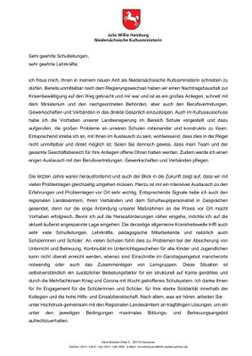 Brief der Kultusministerin Julia Willie Hamburg zum Jahreswechsel 2022/23: