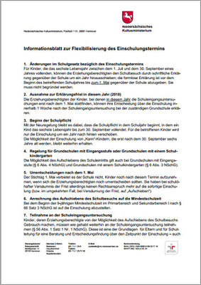 Kategorie: Einschulungsalter, Flexibilisierung, Diskussion, Niedersachsen